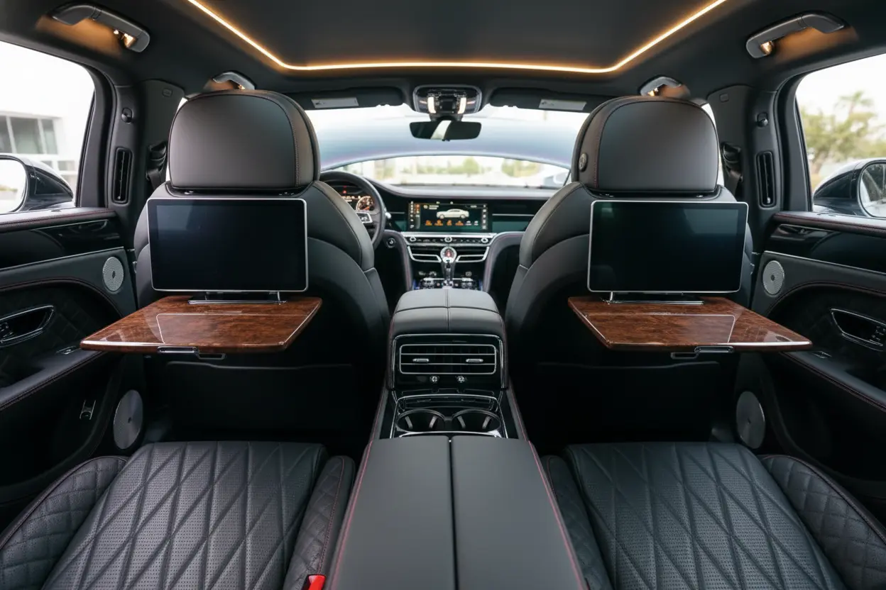 The cabin welcomes you with soft, reclining leather seats, elegant detailing, and generous legroom that redefines comfort. Whether you’re heading to an important business meeting or a grand celebration, the Flying Spur ensures you travel in complete relaxation and style. Every journey feels smooth and effortless, offering the comfort and serenity expected from one of the world’s finest luxury sedans.