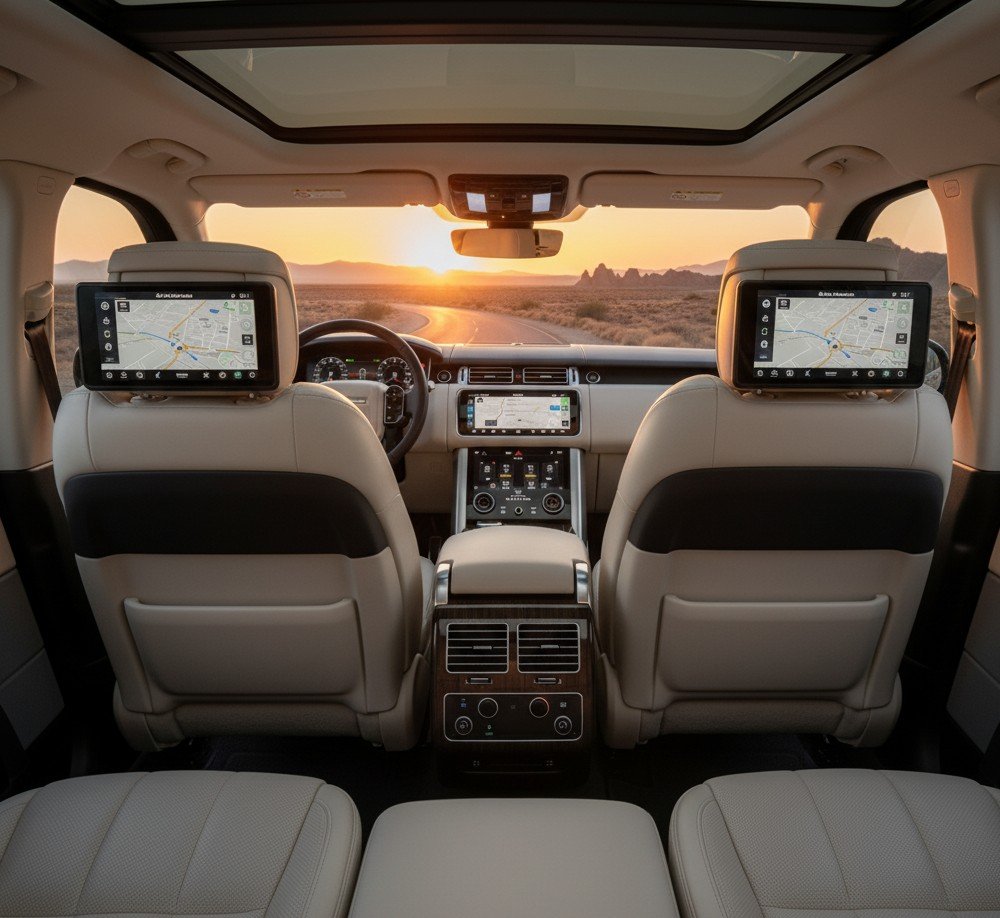 Step inside the Range Rover Autobiography by Emerald Chauffeurs and experience true comfort with reclining rear seats, and climate control for a relaxed journey. Its generous luggage space easily fits multiple suitcases, making it ideal for airport transfers or long-distance travel. Enjoy luxury on the move with rear-seat entertainment, Wi-Fi connectivity, ambient lighting, and a premium sound system. Designed for a smooth, quiet ride, it also features advanced suspension and advanced safety systems to ensure every trip is both secure and serene.